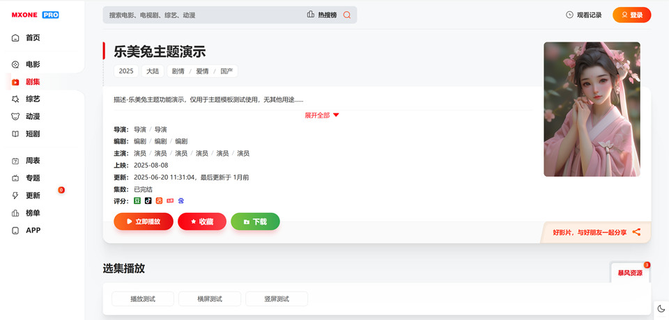 3、新增详情下载开关后台可开启,新增播放页下载开关后台可开启,新增下载页面功能