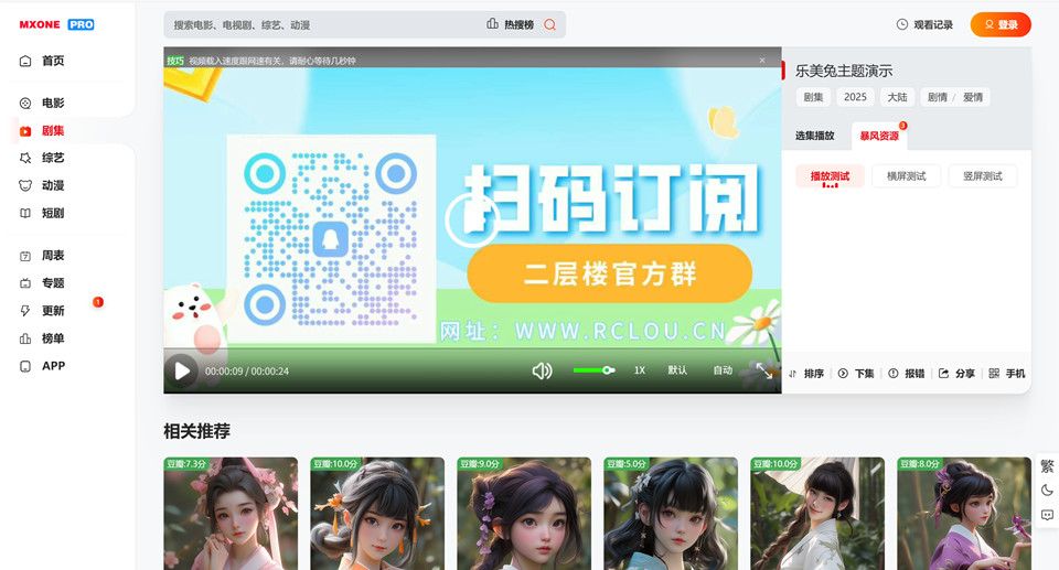 9、新增热播推荐横竖缩略图显示功能,角标自适应显示,可以在后台自定义