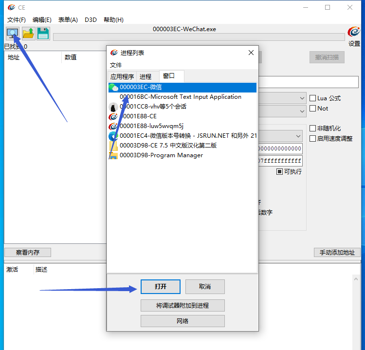 1、先打开微信,再打开Cheat Engine 7.5工具,如图: