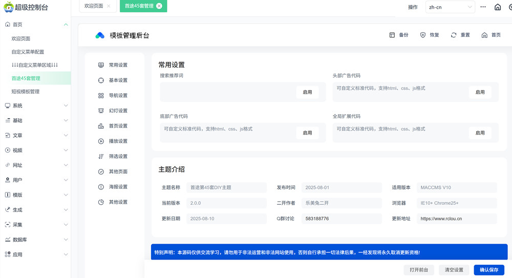 这套模板的功能几乎和短视主题一样,只是有部分功能和样式的差异,主题自带多种轮播样式可自己配置,后台拥有多个功能DIY模块,支持资讯、明星、专题、下载、播放、评论、留言、解析、打赏等基础功能该有的都有。这款主题最核心的亮点,还是模板后台可以拖拉拽自定义首页模板款式,你可以像搭积木一样,自由选择各种模块,随意调整它们的位置、大小、样式,不需要编写一行代码,就能轻松打造出独一无二的页面布局。