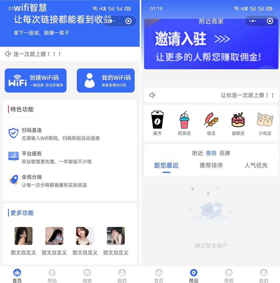 随着线下消费场景的复苏,餐饮、酒店、商超、休闲娱乐等场所的 “WiFi 刚需” 持续。据行业数据显示,全国线下商户超 6000 万家,90% 以上用户有免费连 WiFi 的需求,但传统 WiFi 连接流程繁琐,市场存在巨大空白。共享 WiFi 项目凭借 “扫码即连、安全便捷、商户增收、运营商盈利” 的多方共赢模式,成为 2025 年低成本创业的黄金风口,抓住机遇即可抢占本地流量红利。