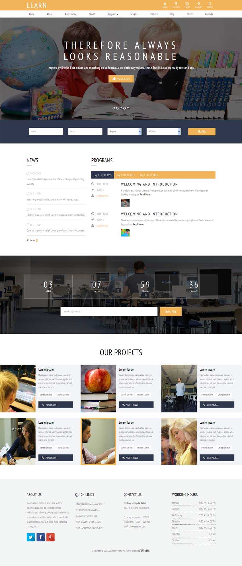 黄色的学生教育培训网站模板,bootstrap教育培训网站模板