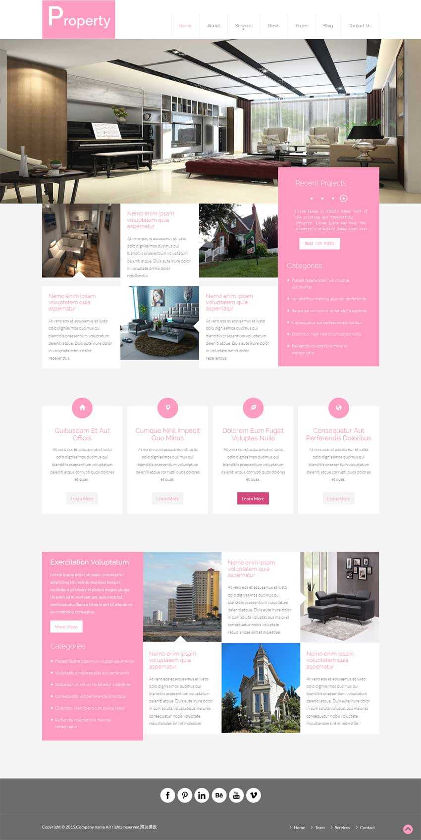 粉色网站模板,创意模板,装饰公司网站模板,装饰公司网站,响应式公司网站模板