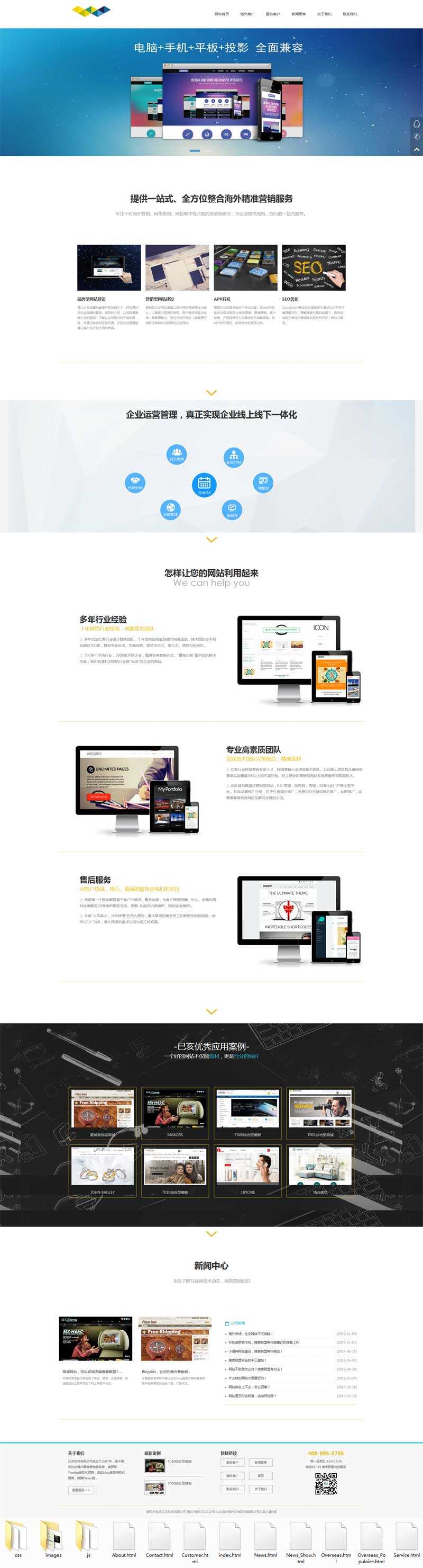 HTML5大气的建站网络科技公司网站模板,响应式的网络营销推广公司网站模板。主要页面有:海外推广、服务客户、新闻聚焦、关于我们、联系我们等总共9个页面。