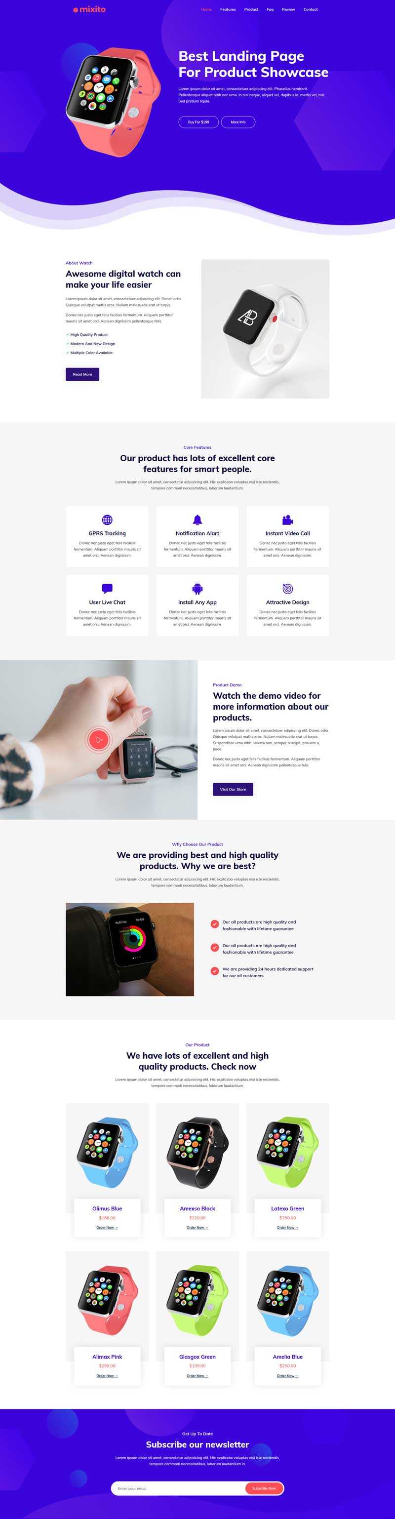 一款实用的产品发布着陆页面HTML模板。它适用于任何数字或实物产品营销目的。它也可用于产品展示。模板是完全可自定义的。任何人都可以使用联系人表单接收电子邮件。