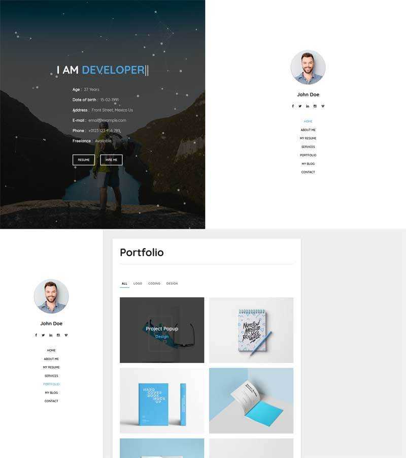 左右全屏切换的个人主页html5通用模板。可使用于网页设计师、前端开发,互联网IT技术人员的个人简历介绍网页模板下载。