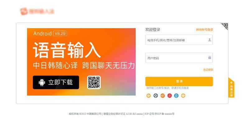 【原创】简单通用的搜狗网站会员账号登录页面模板。通过js控制form表单的登录和密码框,不满足条件给出提示,并且控制无法登录。只有账号和密码都合法才能登录。