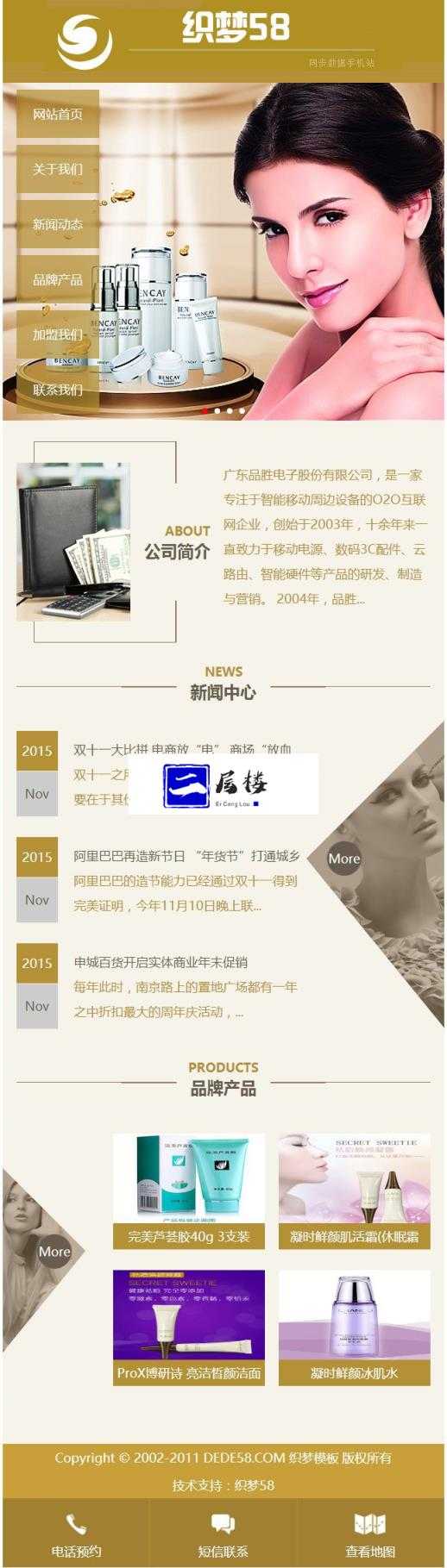 化妆品公司织梦dedecms手机站模板(同步pc数据)