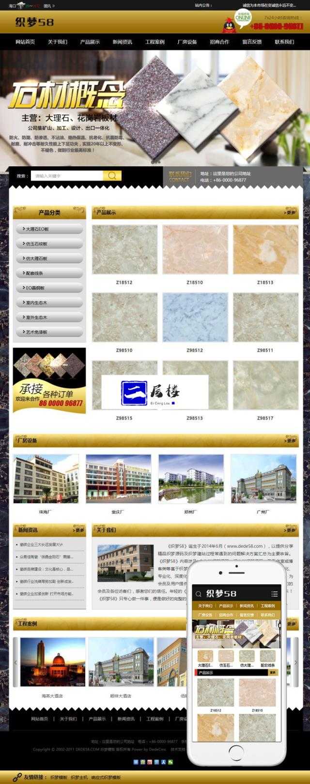 大理石瓷砖建材加工厂网站织梦模板(带手机移动端)+wap+利于SEO优化