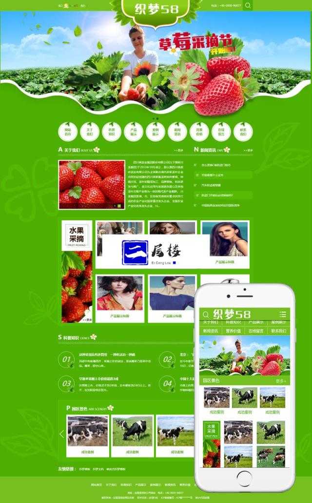 绿色水果蔬菜类织梦模板(带手机端)+PC+移动端+利于SEO优化