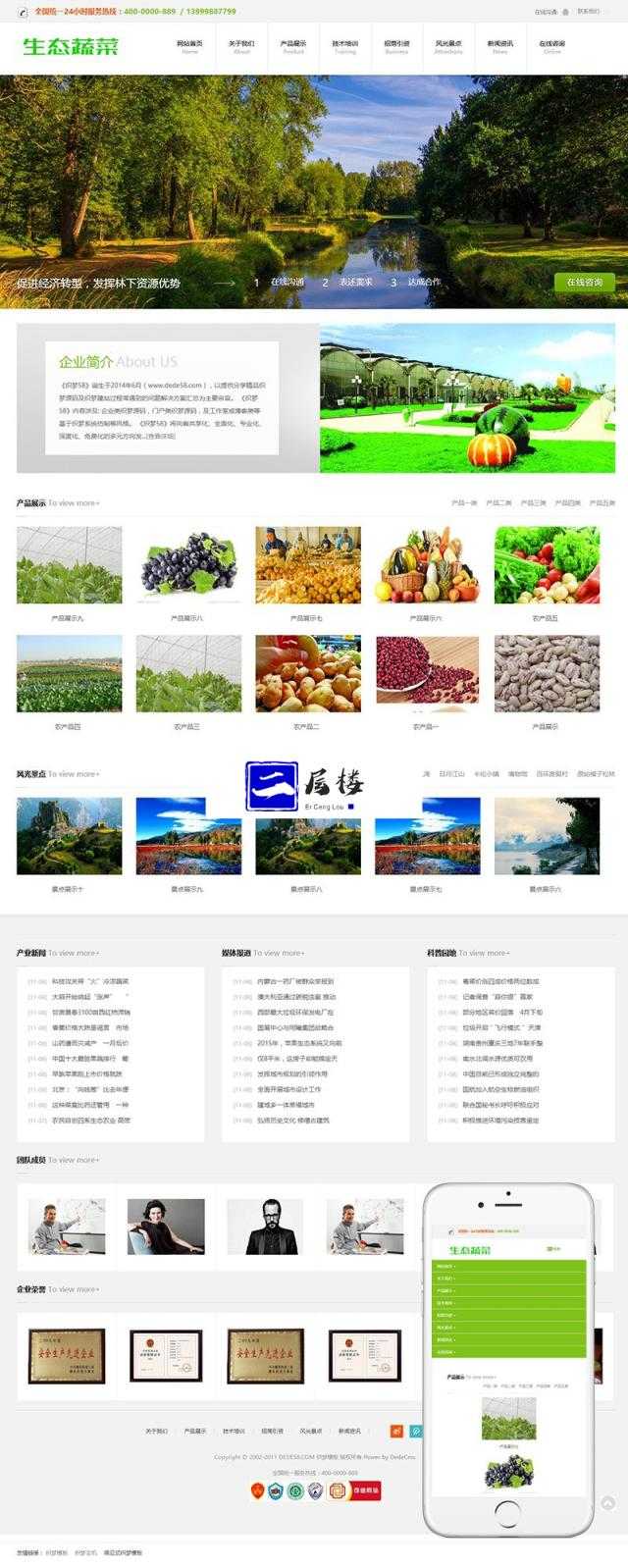 响应式生态蔬菜类企业织梦模板(自适应手机端)
