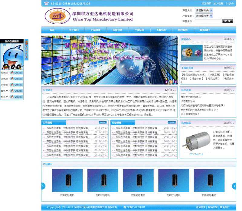 蓝色的电机制造业公司网站html模板