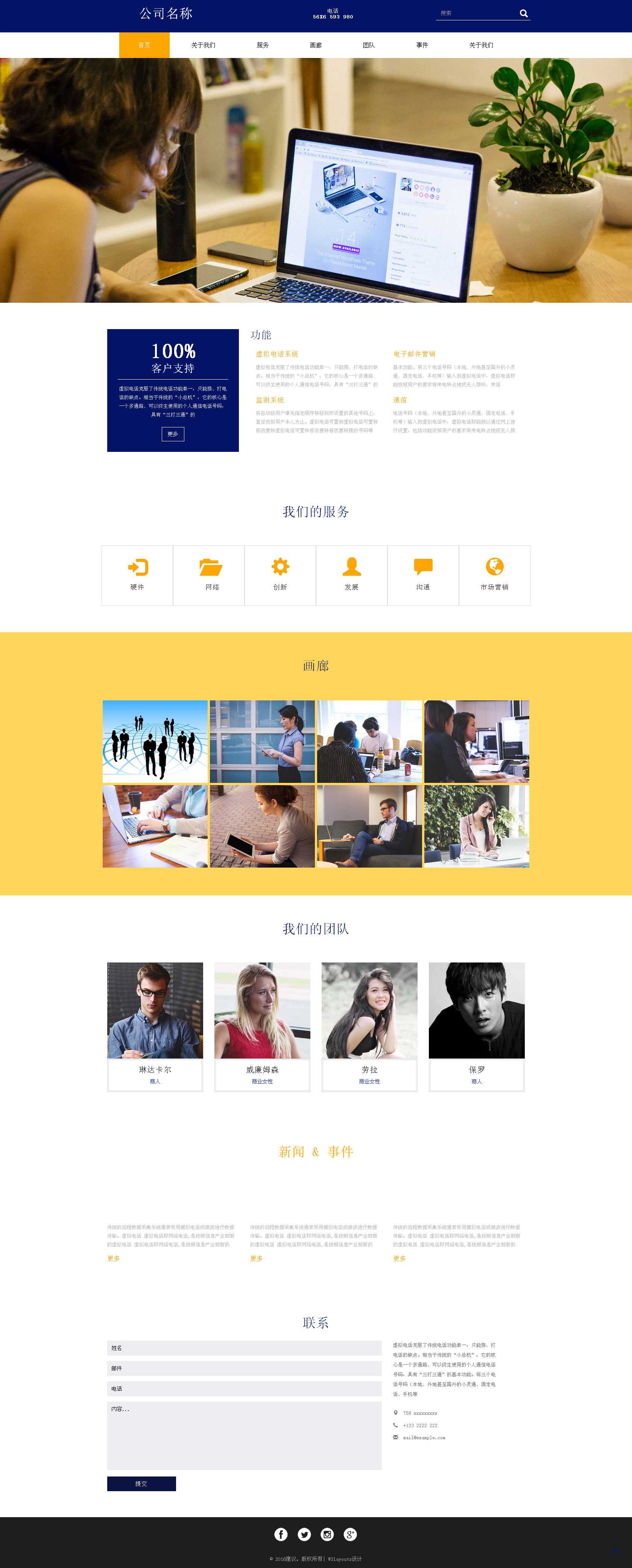 蓝色咨询管理网页模板,通用的商务咨询网站单页模板。